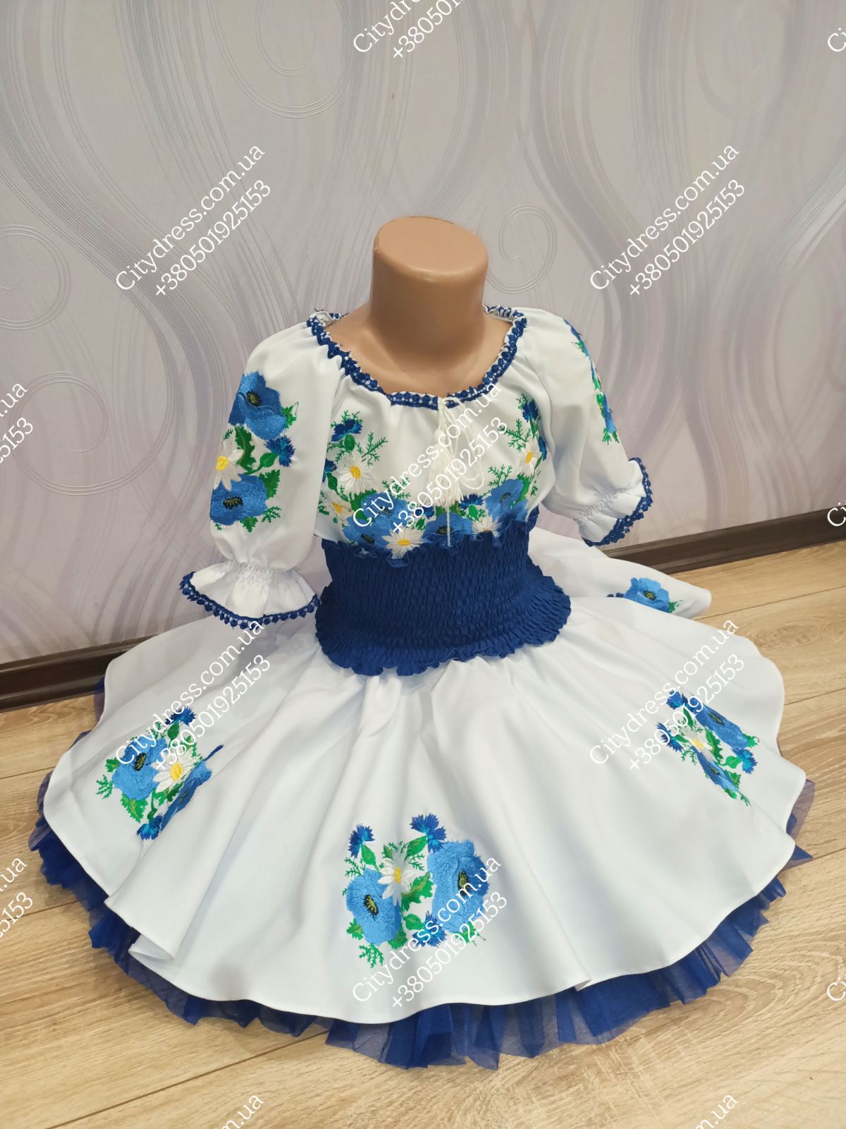 Український костюм із сонце-кльош спідницею, вишивкою по колу та фатіновим під'юбником