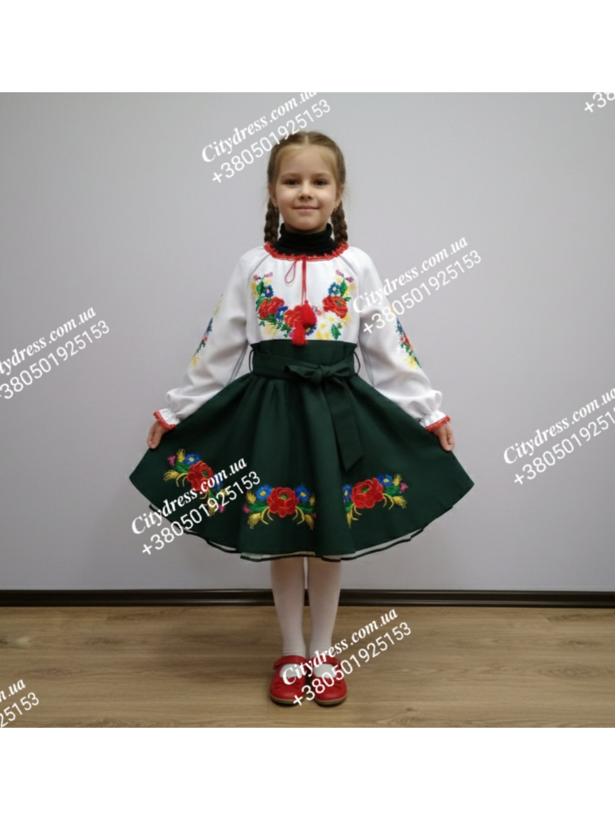 Український костюм із сонце-кльош спідницею, вишивкою по колу та фатіновим під'юбником