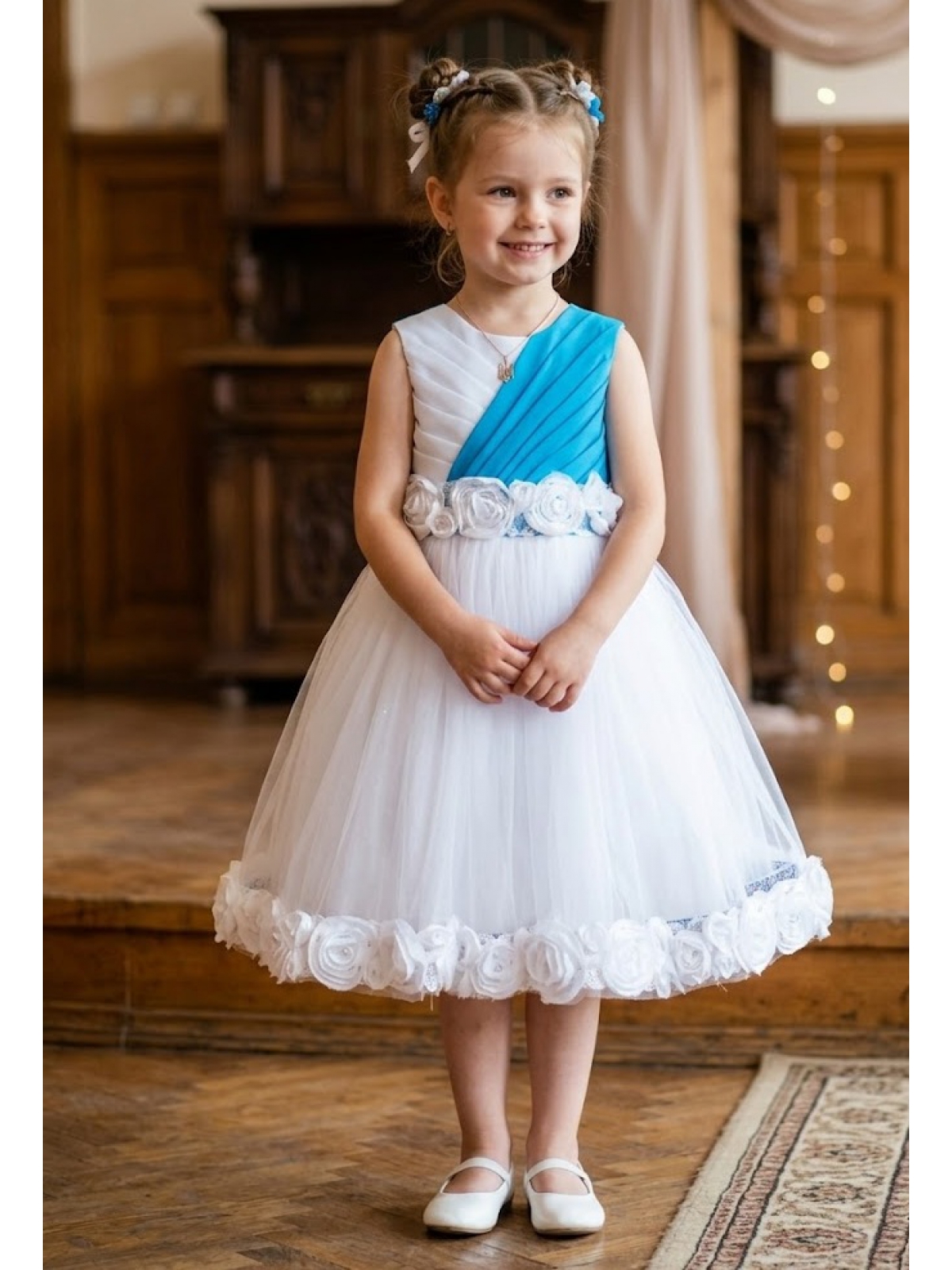 сукня святкова ,корсет шнурівка ,біла з голубим.
