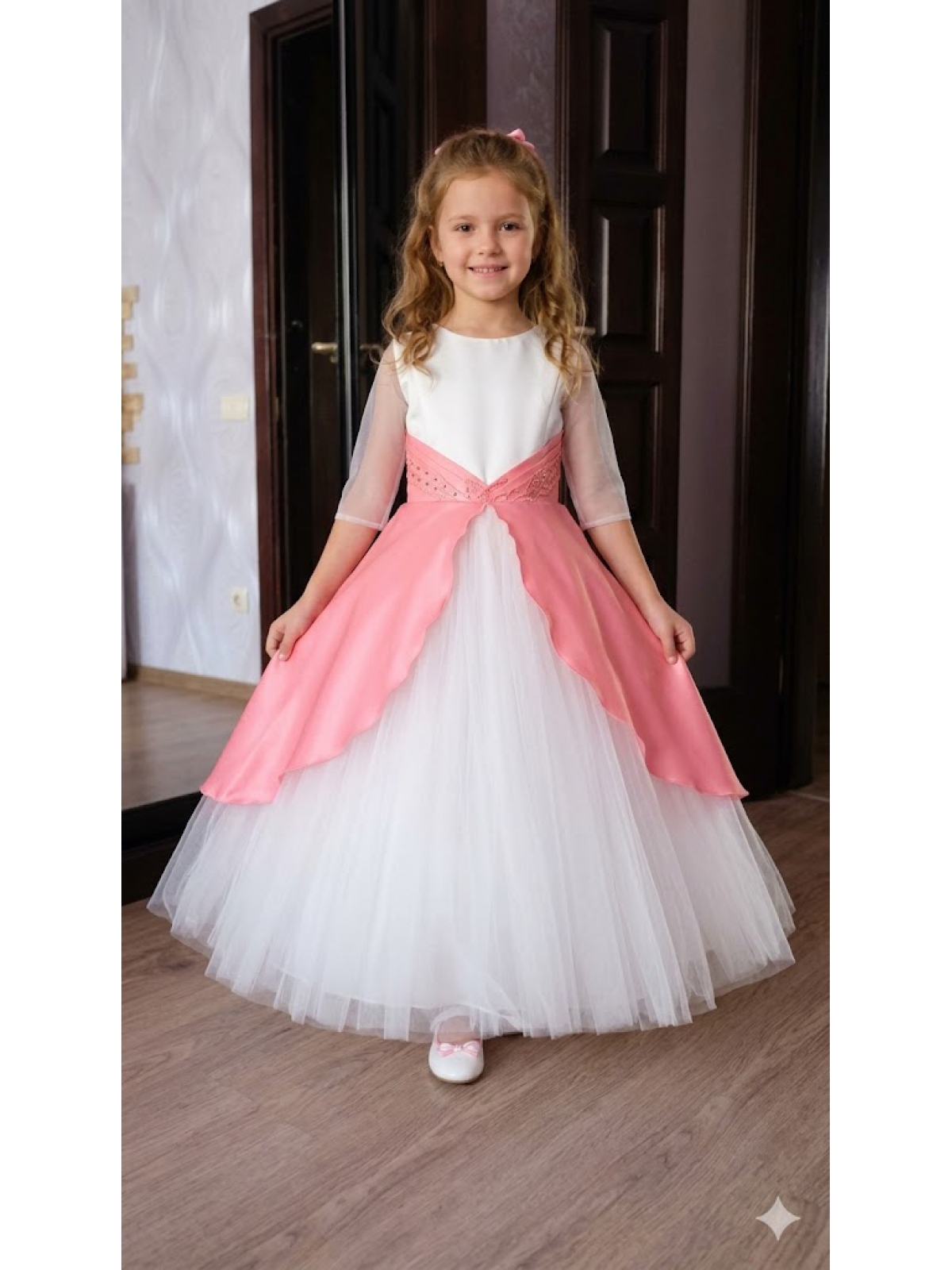 Дитяча сукня, корсет шнурівка, айворі світле з кораловим.