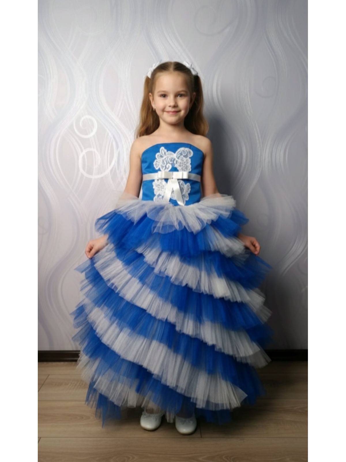 Дитяча сукня, корсет шнурівка, колір білий з синім.